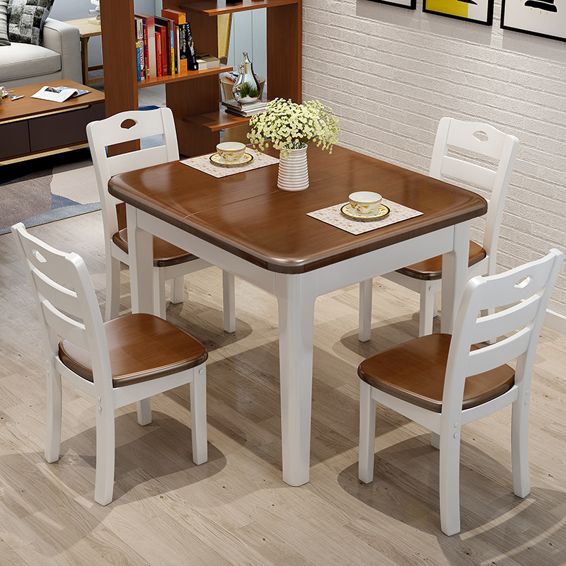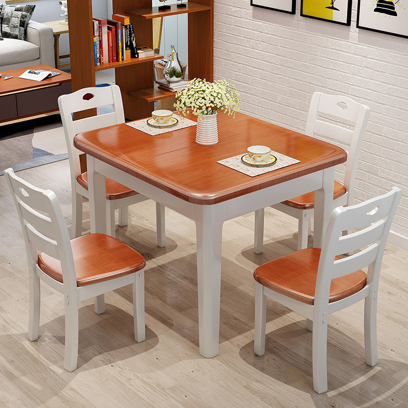 Full solid wood folding table for home 4 people rectangular dining table minimalist modern small family type telescopic 6 people dining table and chairs
