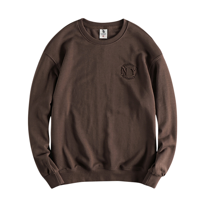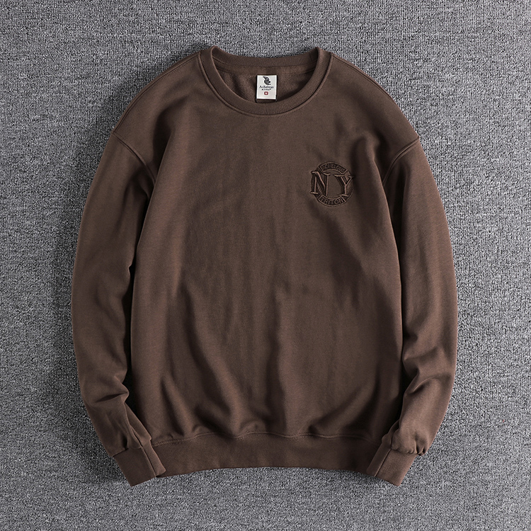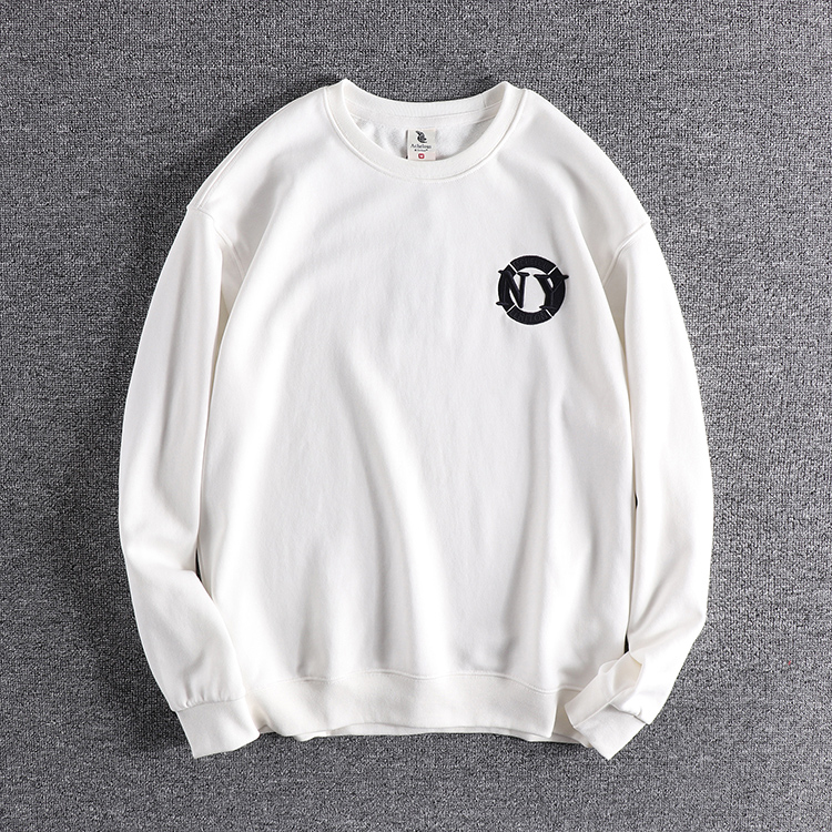Spring simple round neck pullover thick cotton T embroidered letters youth loose trend long sleeve terry thick T-shirt men