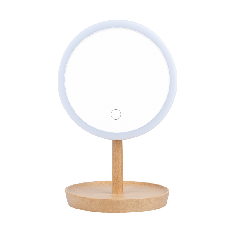 High-definition Enlarged Makeup Mirror Desktop LED Lamp Double Face with Enlarged Ins Wind Girl Hearts Custom Mirror Wood Woody Wood