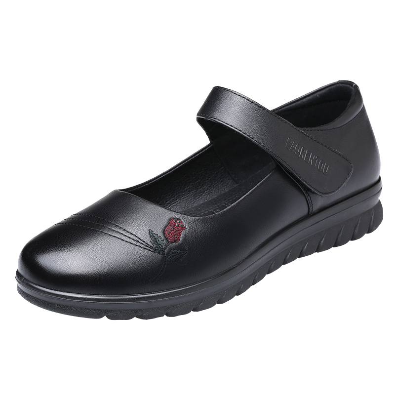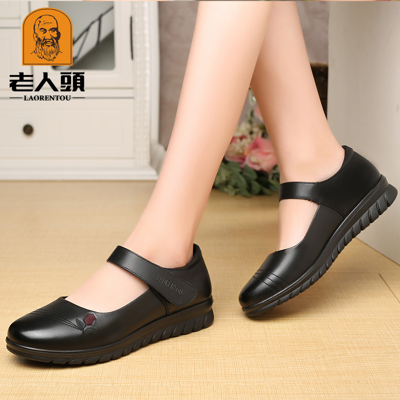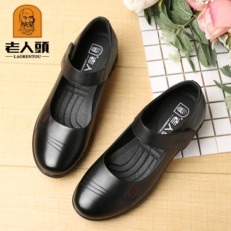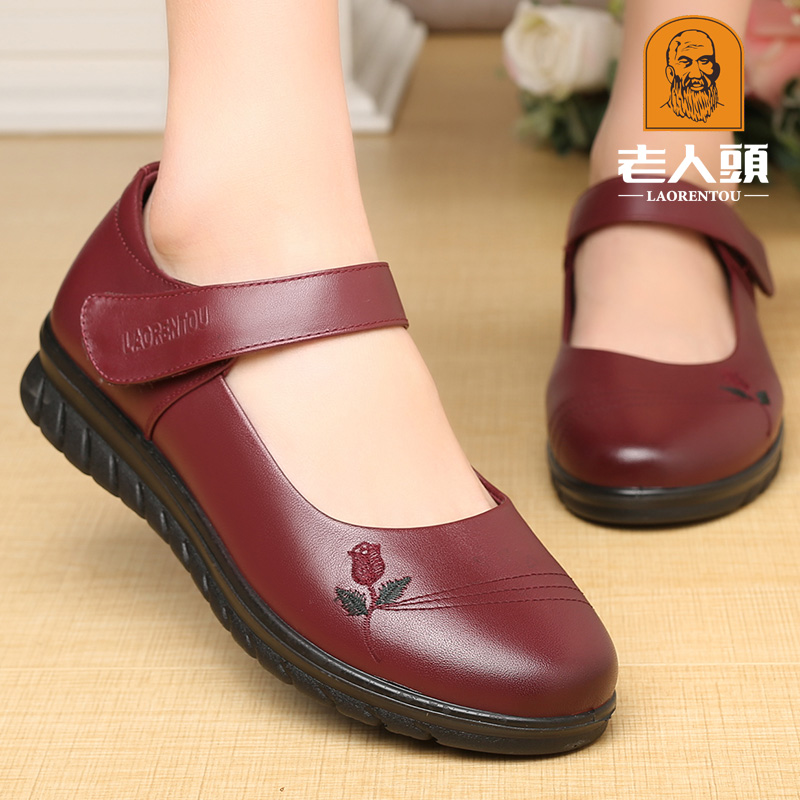 Old man's head leather shoes 2022 new genuine leather soft-bottom women shoes flat bottom Shallow Mouth Casual Bag Shoes Middle Aged Mother Shoes