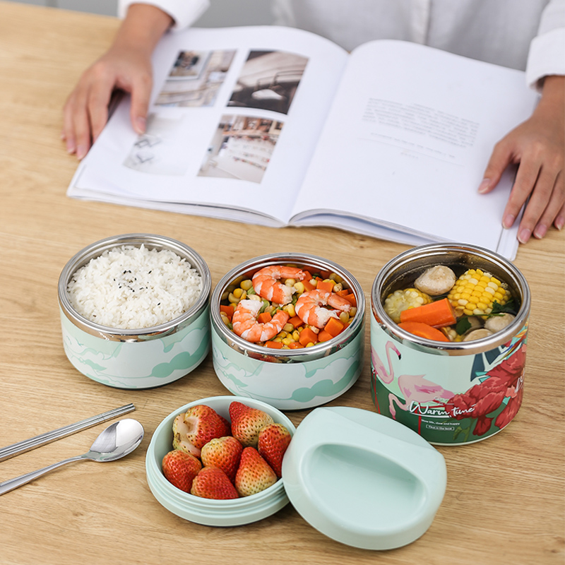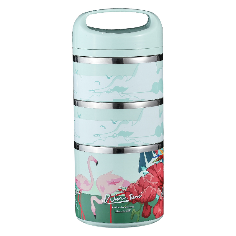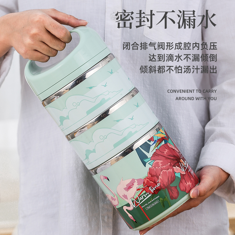 Portable stainless steel student lunch box vacuum insulation lunch box bucket Three-layer office lunch box large capacity insulation bucket