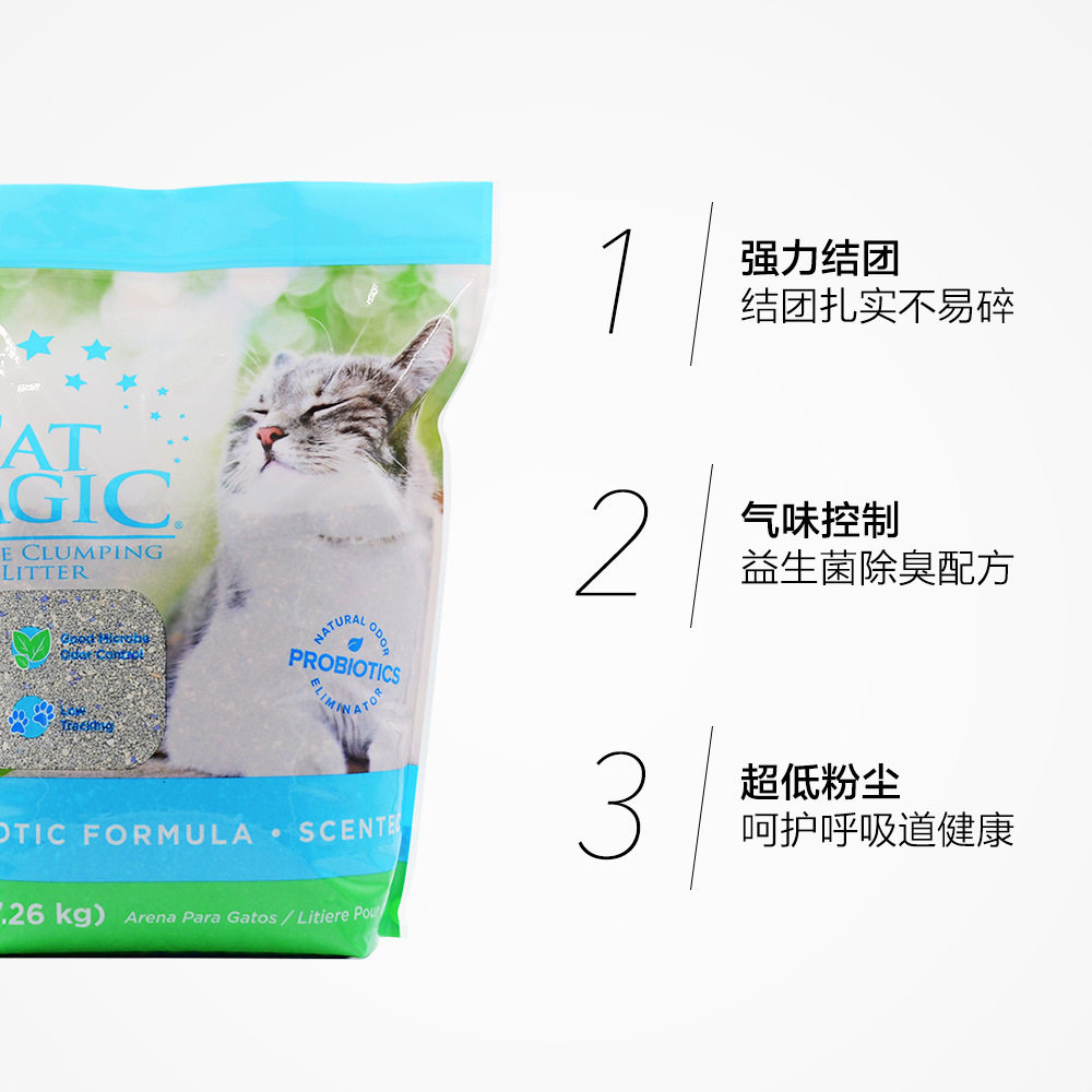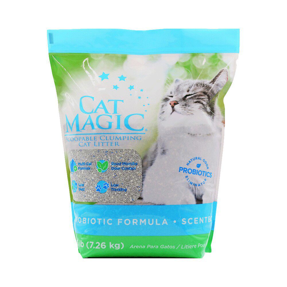 CatMagic Meow Cleaner Deodorant Agglomerated Bentonite Cat Litter Chamomile Activated Charcoal Fragrance 14 lbs Spot