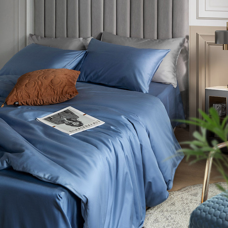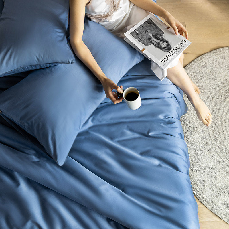 Love new products 60 long-staple cotton four-piece set Cotton simple European-style kit Quiet moonlight blue
