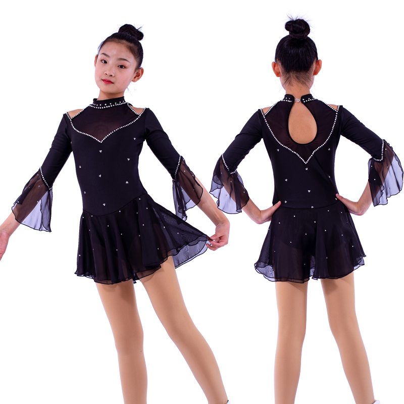 Figure skating dress Children's female adult hand-flow Su bronzed and drill elastic verification exam training to perform pink foreign dress