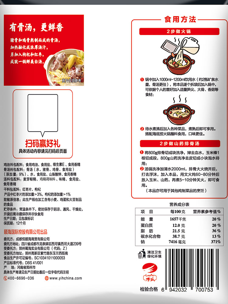Seabed bailing fresh and fragrant soup hot pot soup stock 110g bone soup hot pot stock Home Small bag