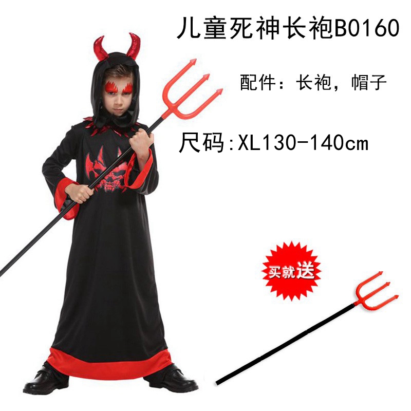 Halloween Children's Costume Balls Party Stage Performance Boy Cos Death Ghost Hell Emissary Clothes