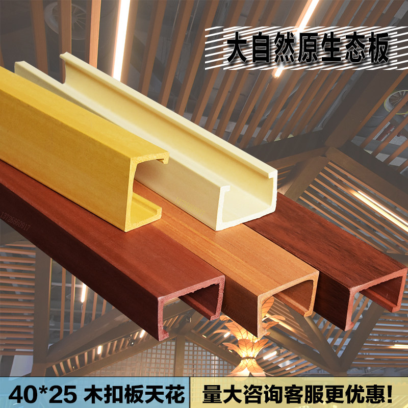 Ecological Wood Smallpox Ceiling Material PVC Balcony Decoration Dining Room Mall U-type buckle grille Foundry corridor Wood Wood