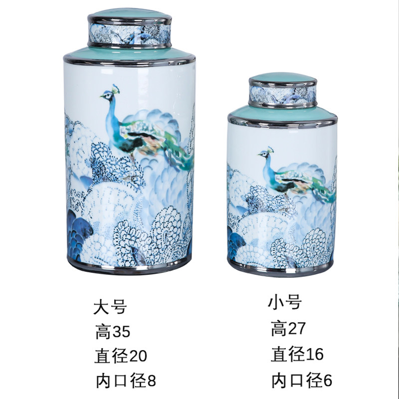 Jingdezhen new Chinese-style ceramic vase flower storage jar decoration candy jar entrance living room soft decoration peacock