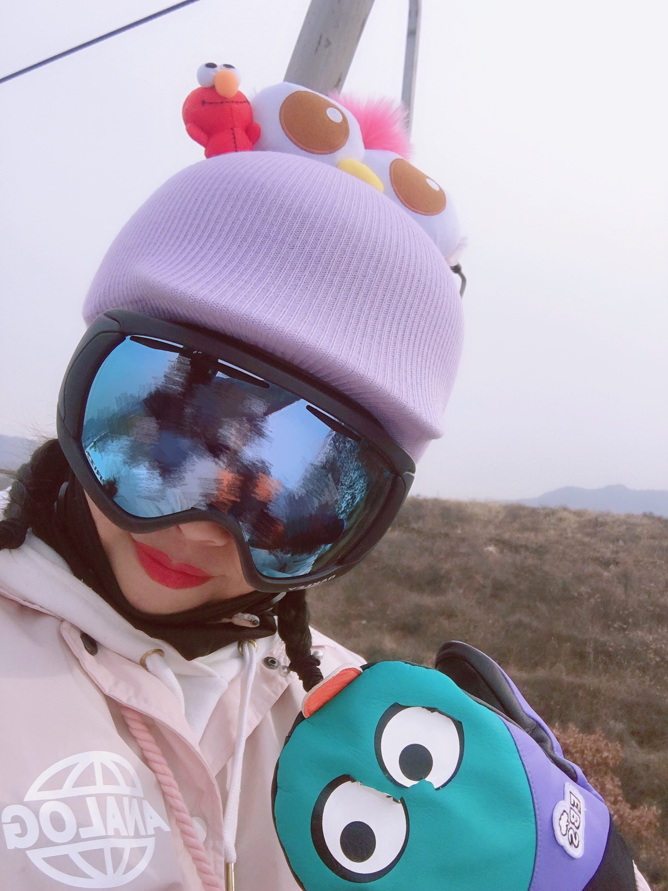 Sesame Street Big Eyes Ski Gliding Umbrella Individuality Safety Helmet Electric Safety Helmet Sleeve Electric safety helmet All hands