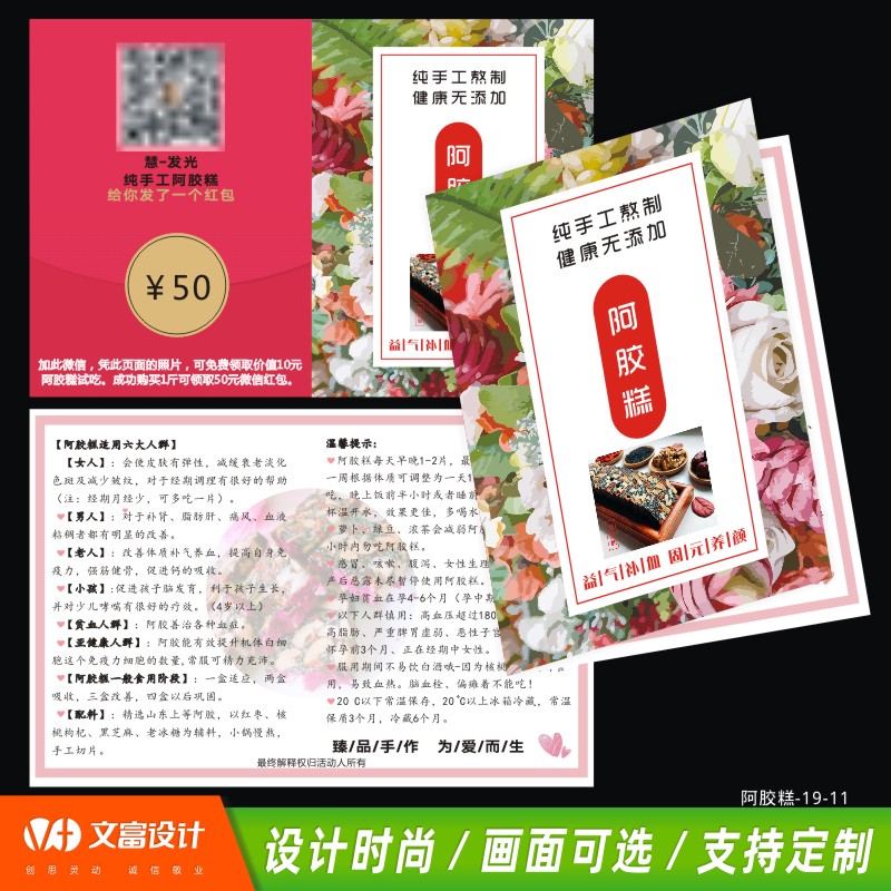 Autumn and winter tonic cardboard custom-made food bookmark card Ejiao cake after-sales card precautions card custom health care product promotional card packaging box introduction card ganoderma lucidum sea cucumber flower glue message card custom