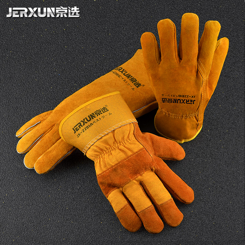 BOE imported full cow leather protection gloves electric welding soft industrial grade flame retardant thermal insulation anti-burn and burn welding work gloves