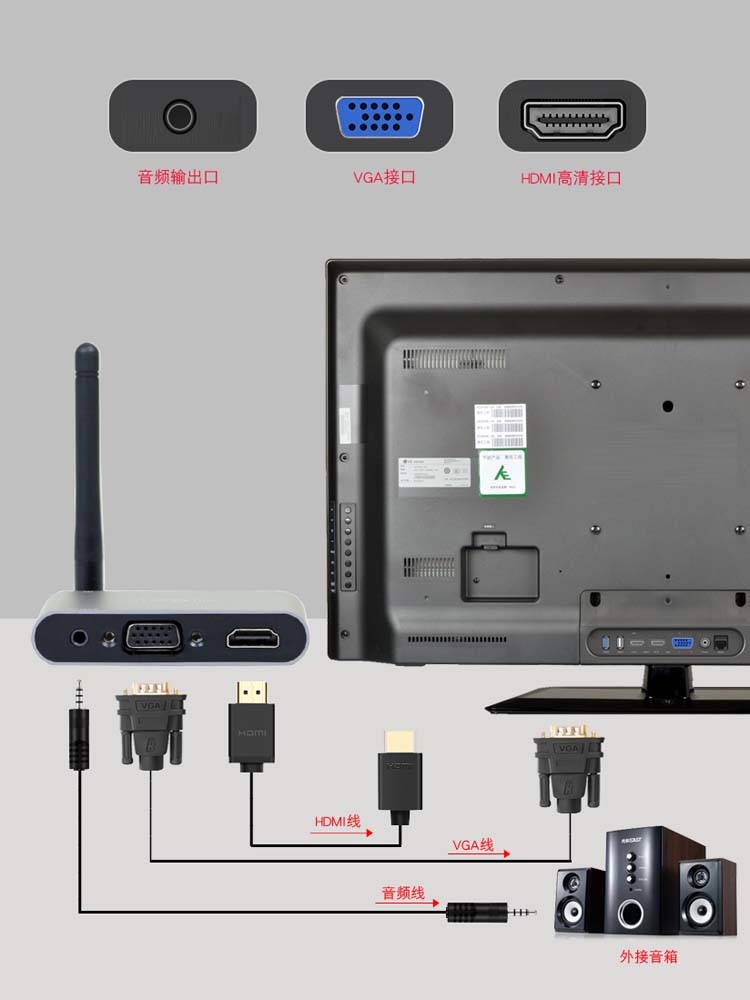 Connect TV projector with the screen mobile phone household wireless HDMI screen vga display AV vehicle
