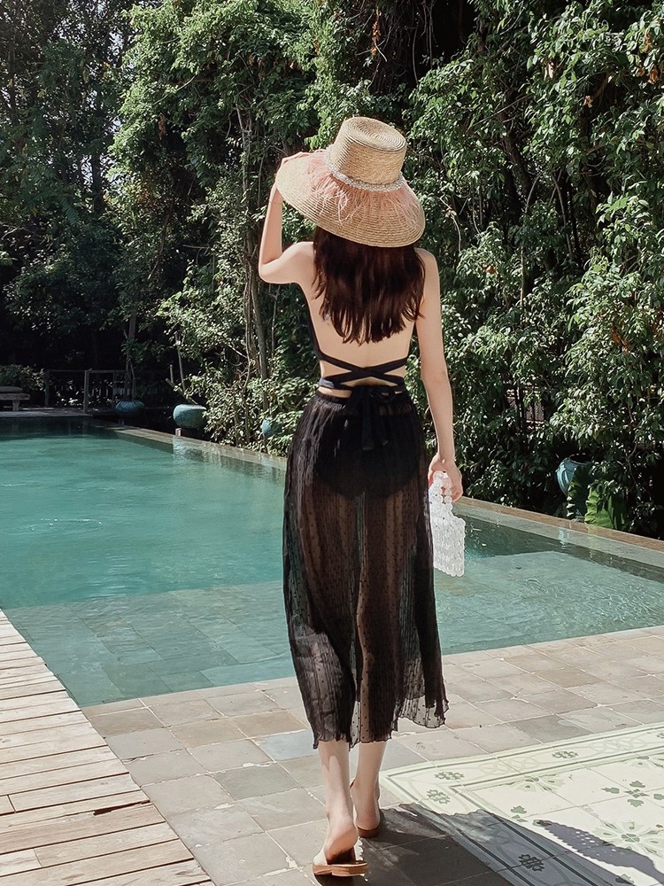 Small Dolphin Swimsuit Lady Sexy Veil for Slim Summer Conservative Swimsuit Net Red Wind Covered with Skirt Style