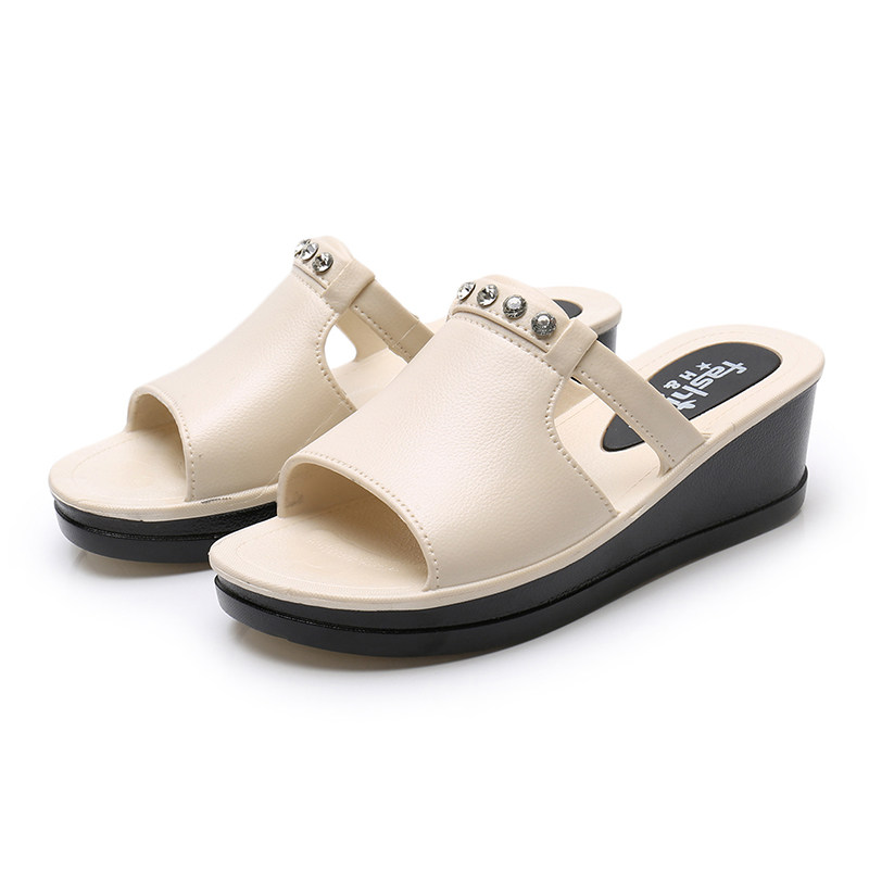 Slippers women's summer outer wear thick-soled wedge-shaped sandals high-heeled all-match non-slip soft bottom home fashion ladies beach shoes