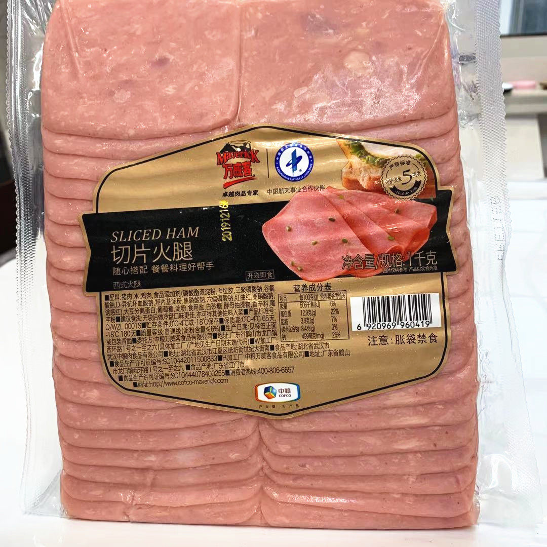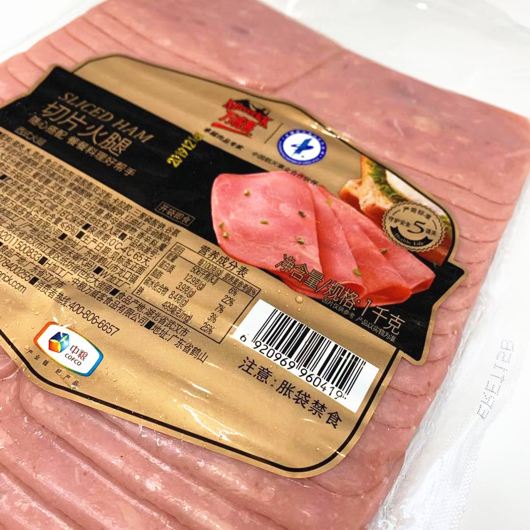 1 bag of COFCO Wanweike sliced ham 1kg Breakfast sandwich hamburger ham slices Instant square ham pieces