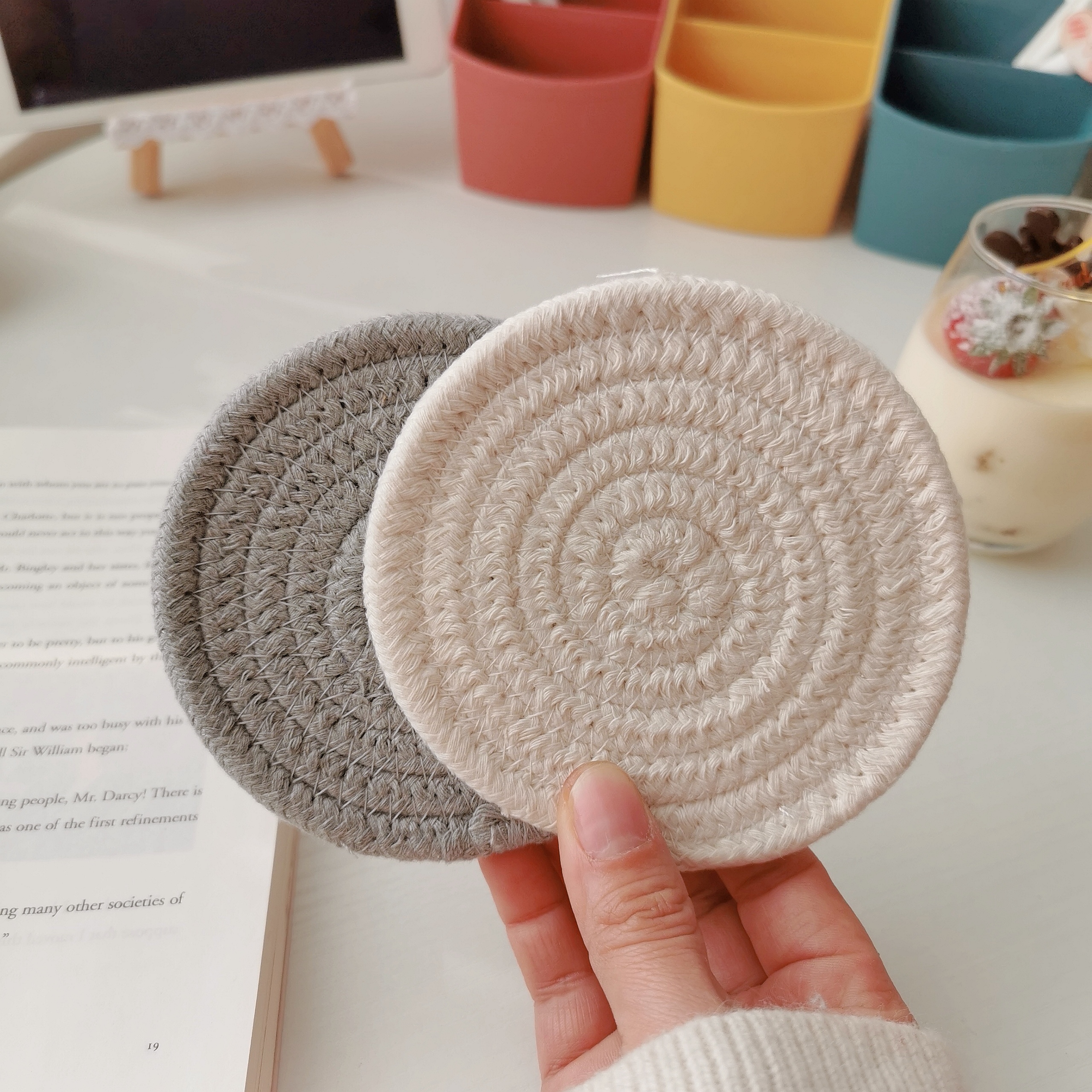 *Pretty little aunt* ins wind Japanese woven cotton thread thickened coaster non-slip anti-scalding heat-resistant mat bowl mat