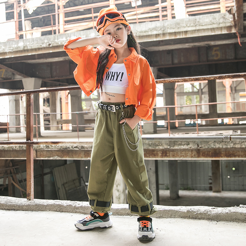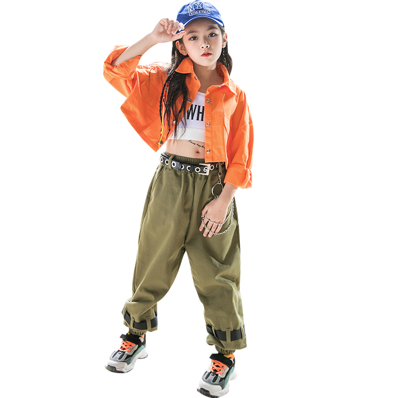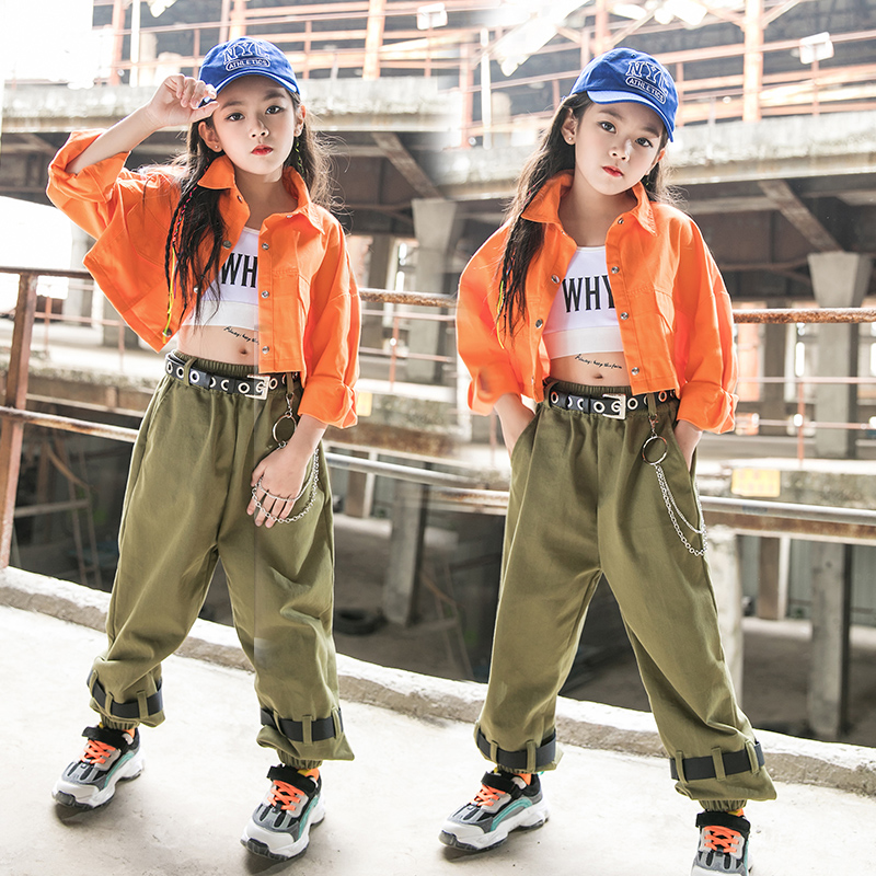 Girls jazz dance costumes children's hip-hop girls hiphop performance costumes navel short jacket tide clothes