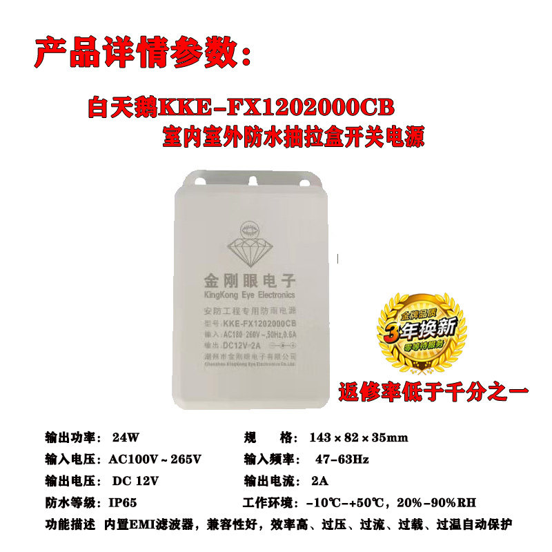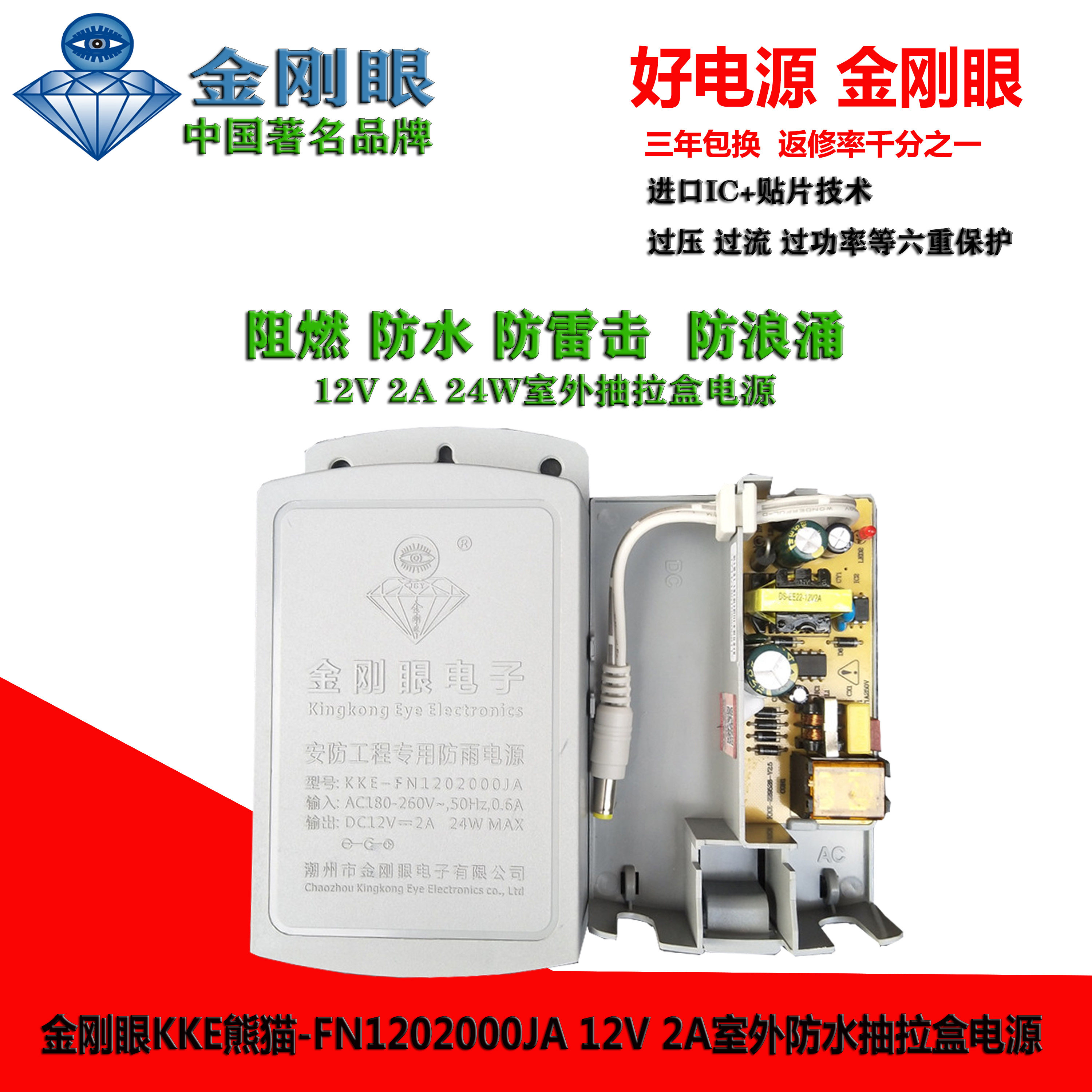Original King Kong Eye Rainproof King 12V2A24W Flame Retardant Lightning Protection Camera Outdoor Intelligent Waterproof Power Supply for Engineering
