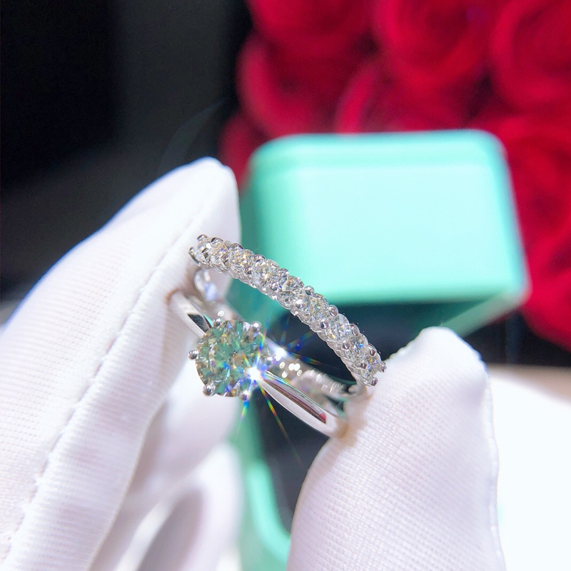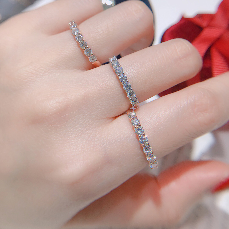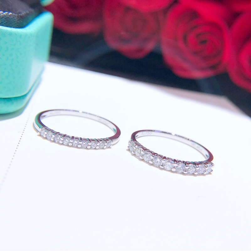 18K Gold Diamond Ring Marriage Engagement Diamond Ring Jurchen Diamond Stacked Simple Versatile Diamond Row