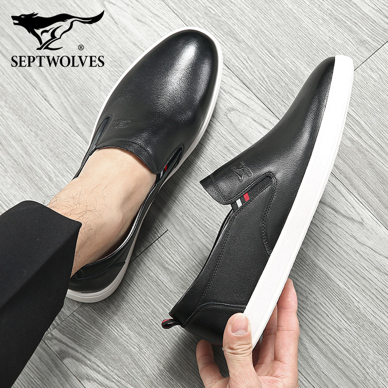 Septwolves new men's shoes spring slip-on leather shoes men's all-match trend leather youth shoes men's casual shoes