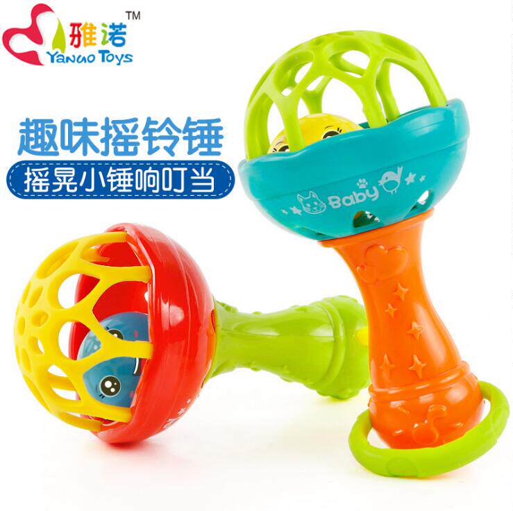 Baby Hand Ring Bell Toy Soft Rubber Teeth Bite Rod Boys 0-1-2-3 Years 6 Months Baby Sage Hammer