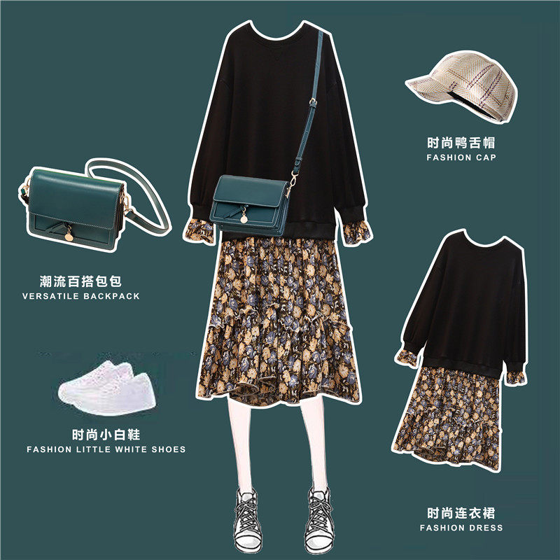 Maternity dress 2023 spring and autumn new lazy wind skirt loose and thin floral splicing bottoming maternity dress