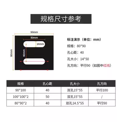 30*50 round hole 9 mm40 * 40 round hole 9 mm50 * 50 single waist hole 9*3050*60 single waist hole 9*3050*60