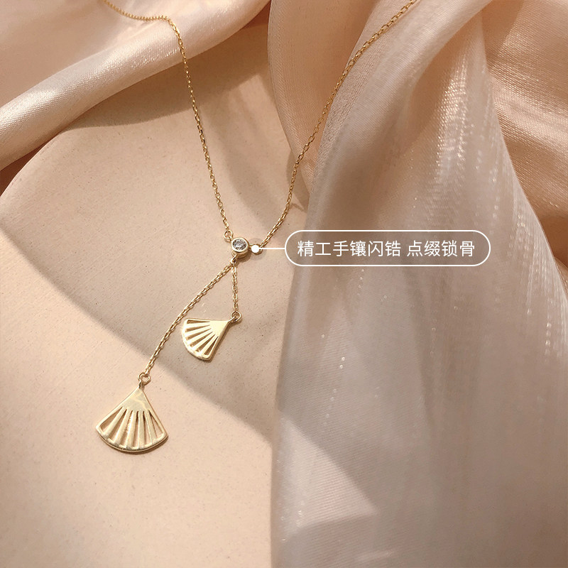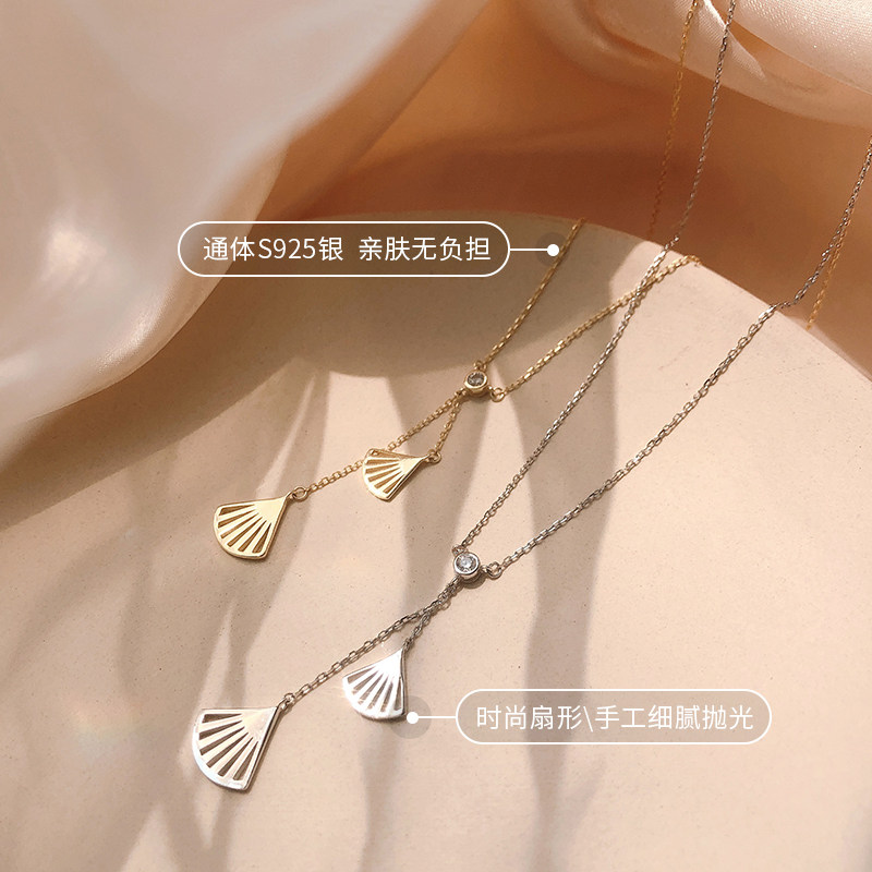 Hollow fan necklace 925 sterling silver female ins simple Korean version of the collarbone chain niche design temperament students small fresh