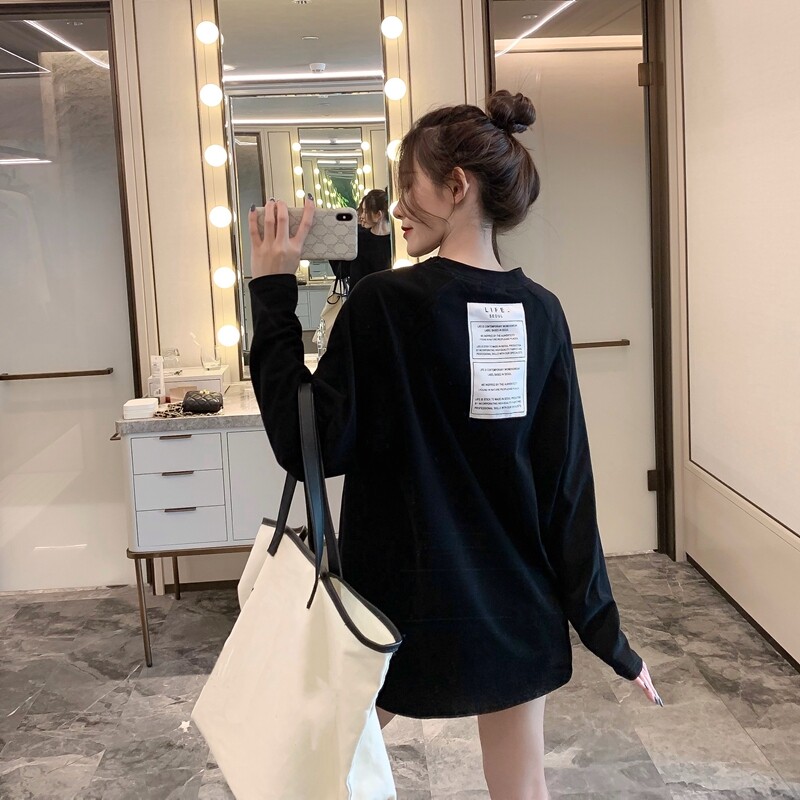 Large size medium long version T-shirt woman 2022 new fall Korean version easy to beat undershirt mesh red ins tide round collar blouse