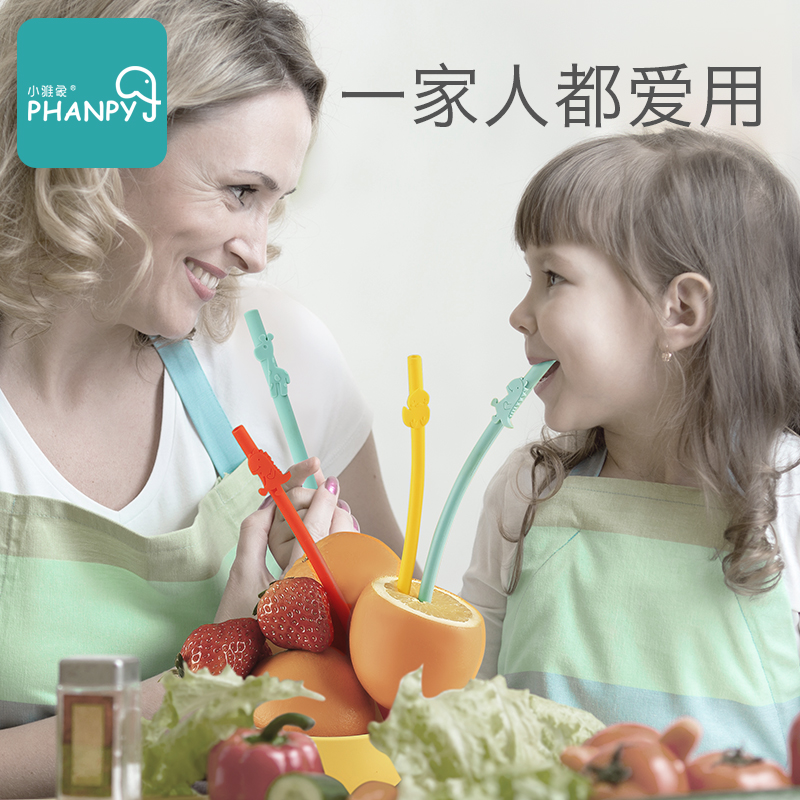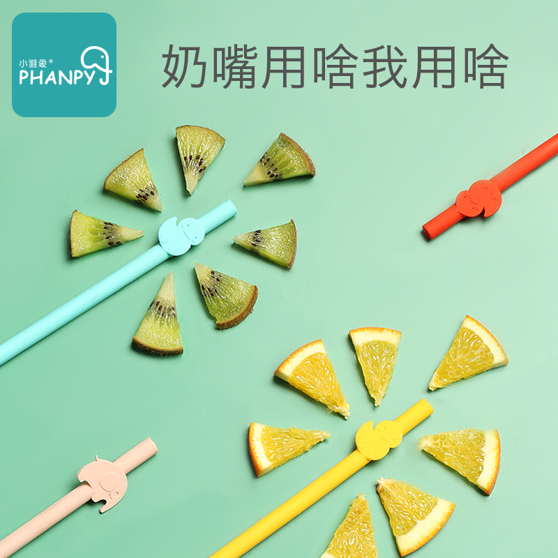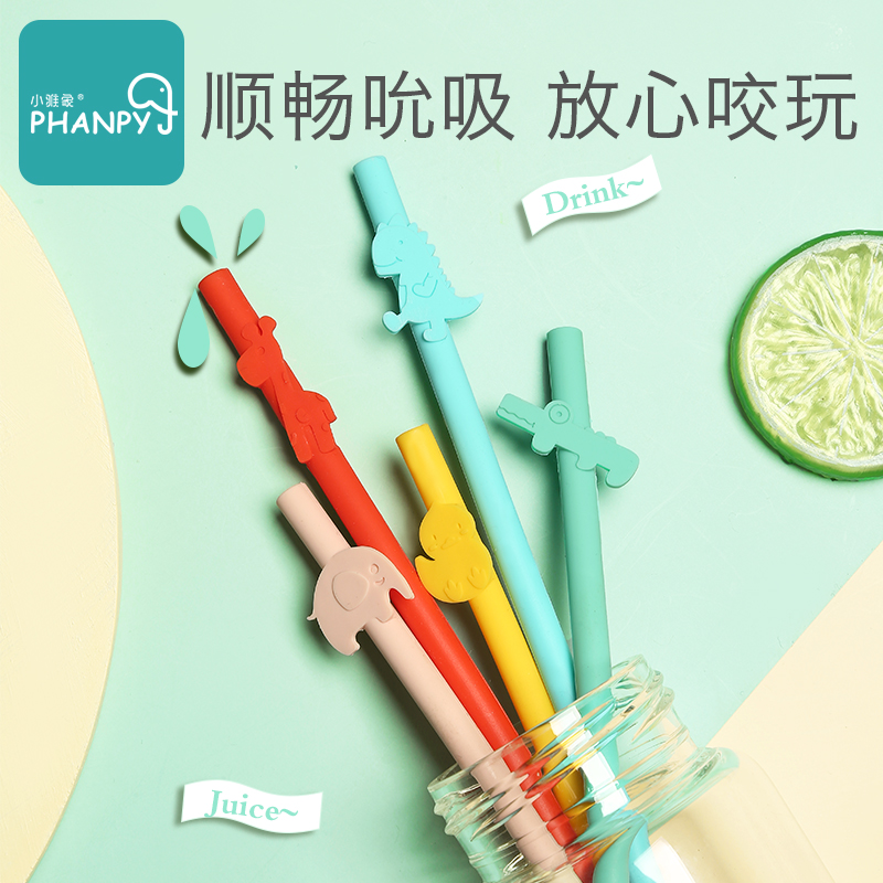 Xiaoya Elephant silicone straw Children's food grade non-disposable baby straw Baby soft straw drinking water cartoon
