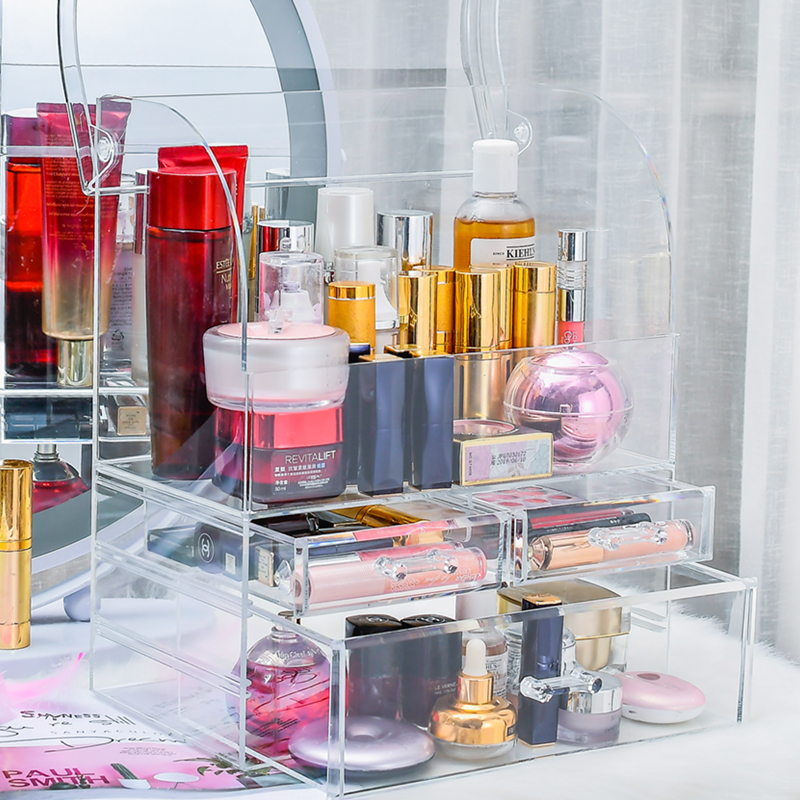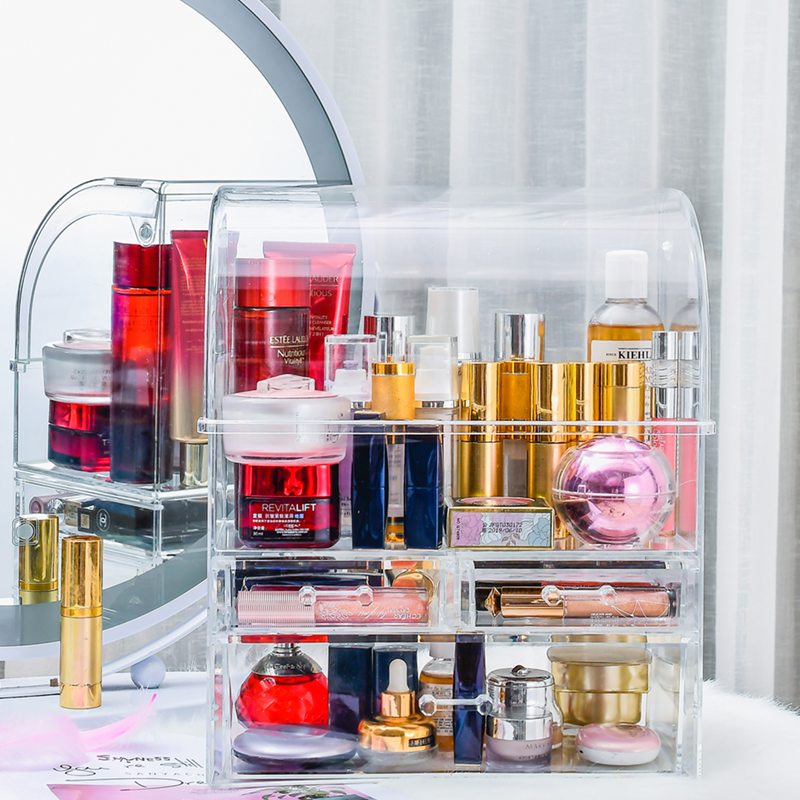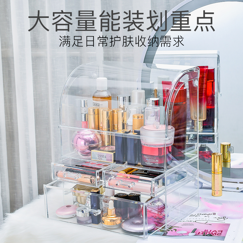 Net red transparent dustproof cosmetic storage box desktop rack lipstick skin care products acrylic dressing table finishing