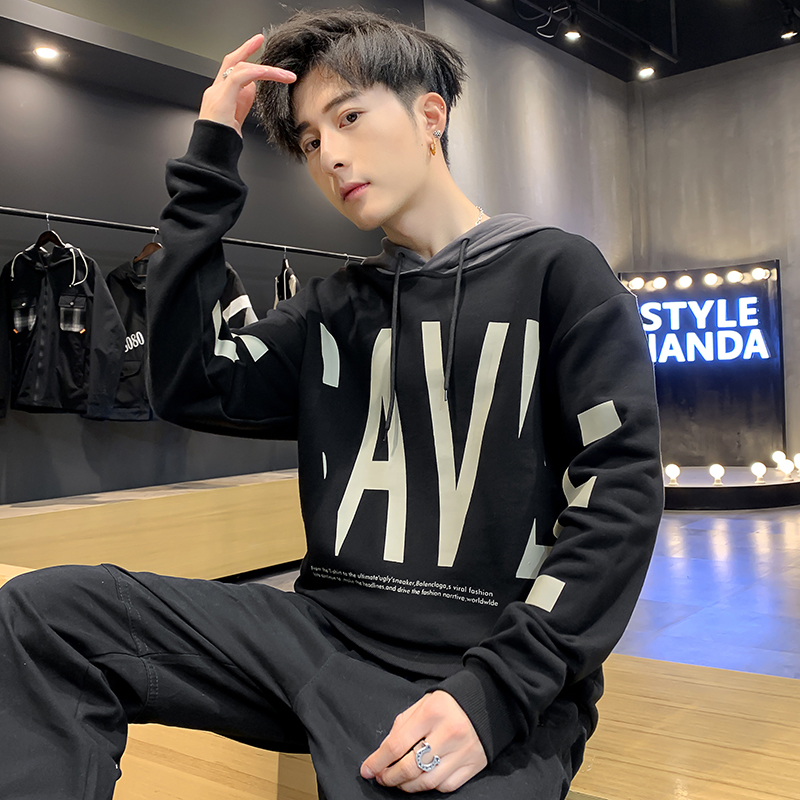 Versatile handsome men's spring and summer sweater hooded spring and autumn youth loose student Korean version of the trend jacket long sleeve