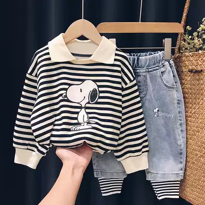 SNOOPY SNOOPY toddler casual top children's 2021 autumn new men's and women's striped long-sleeved knitted top