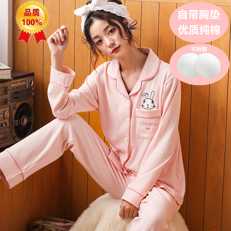 Pajamas with chest pads women's spring autumn winter cardigan long sleeve cotton large size pregnant women postpartum confinement clothes home clothes can be worn outside