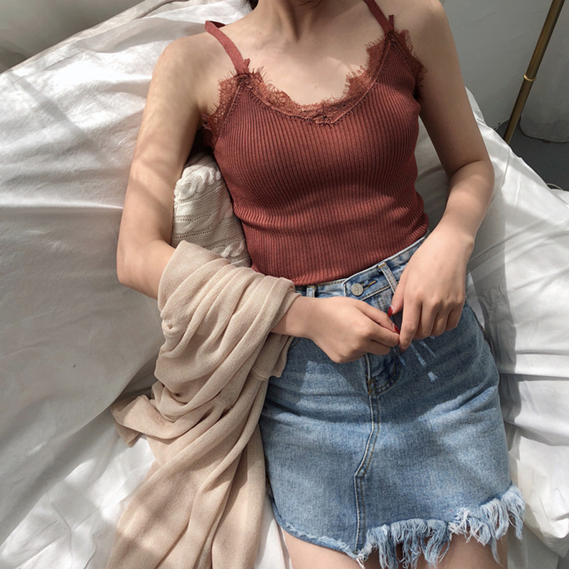 Harness Vest Woman Summer Outwear Sexy Lace Knit Bottom Inner Hitch Coat Port Taste Vintage Retro Chic Smear