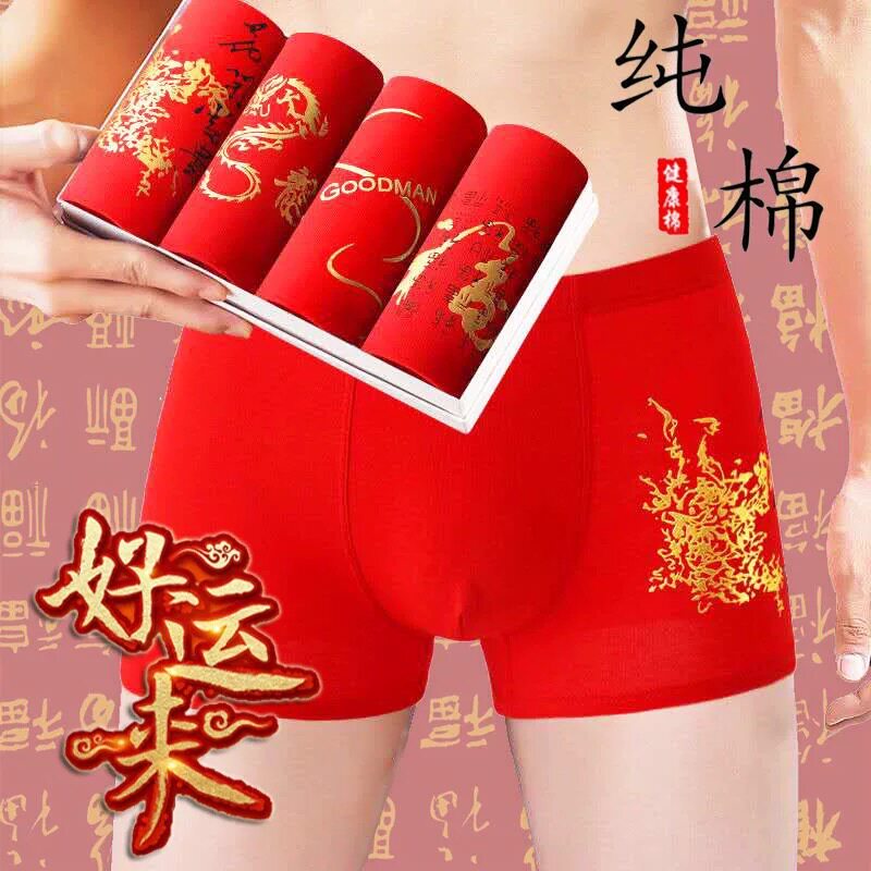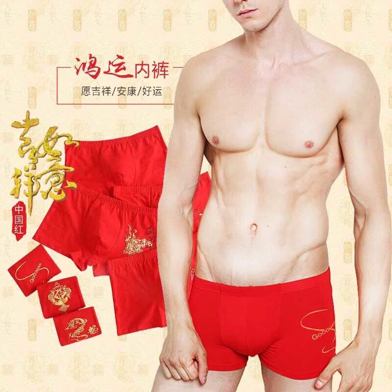 This year men's underwear men's underwear men's flat corner pants red lingerie big red belongs to rat pants head rat year gift
