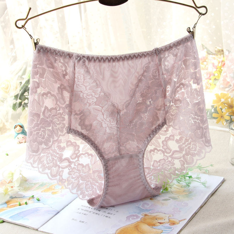 Large size high waist underpants female crotch High waist safety pants lace sexy triangle women's underwear No marks hollow