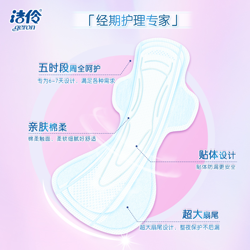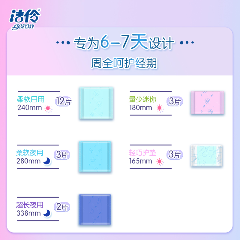 Clean and sanitary cotton full-length care Miansoft ultra-thin transient suction anti-side leakage day and night combined padded cushion Mini 5 packs