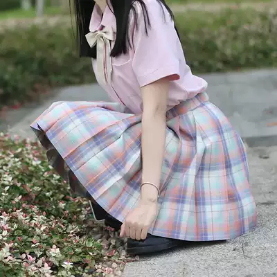 Angel feet jk uniform painting hand original plaid pleated skirt short skirt mid skirt