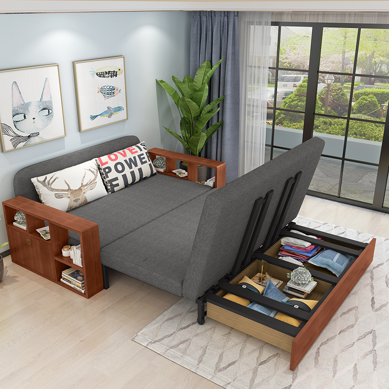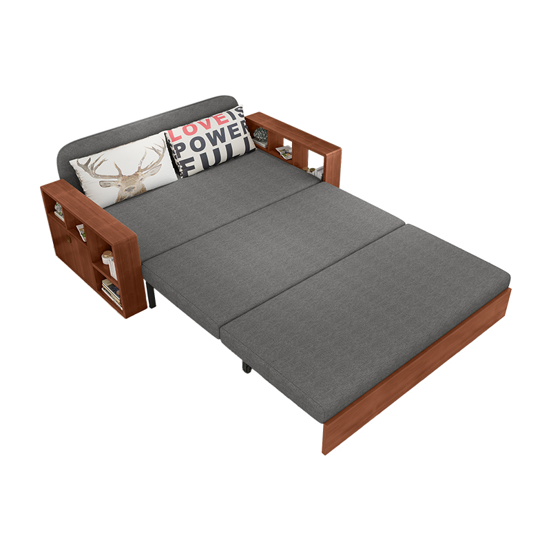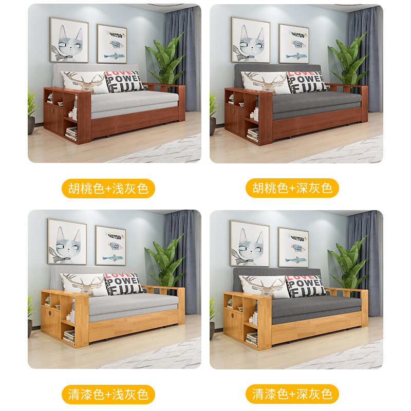 Nordic full solid wood sofa bed push-pull sitting-bed dual-use pull-out foldable double multi-functional living room small apartment