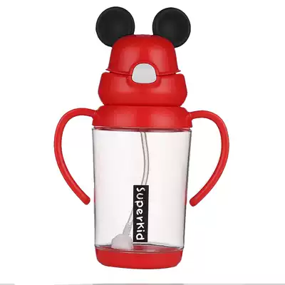 Children's water cup straw water cup baby drinking cup with handle anti-fall household drinking cup with scale dual use