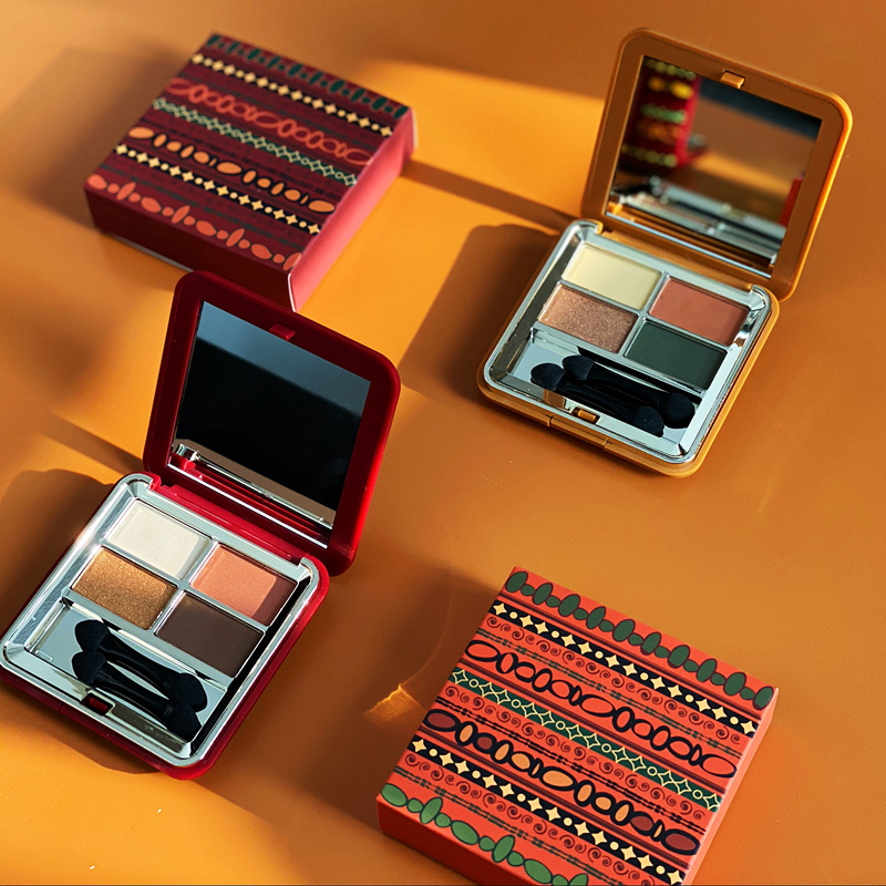Hot Red Wine Four Color Eye Shadow Gift Boxes Fragrant Leaves Orange Four Color Eye Shadow Gift Boxes.