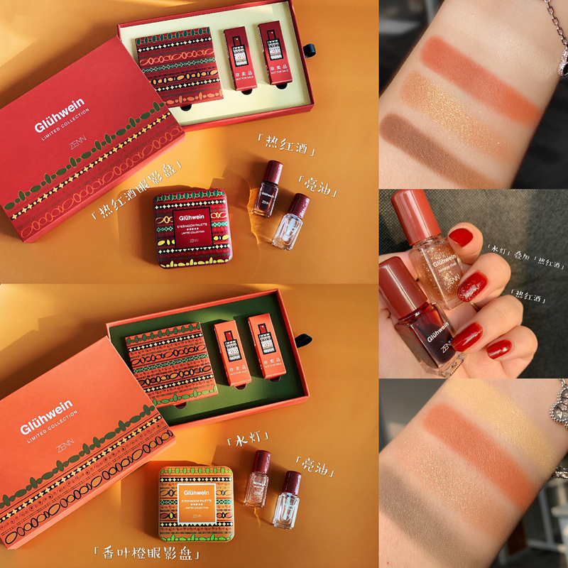 ZENN winter limited gift box hot red wine fragrant leaves orange four color eye shadow limited gift box for nail polish