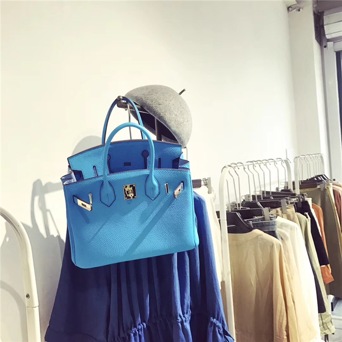 Sky blue lychee pattern top layer cowhide platinum bag genuine leather women's bag bright color soft leather handbag shoulder messenger bag