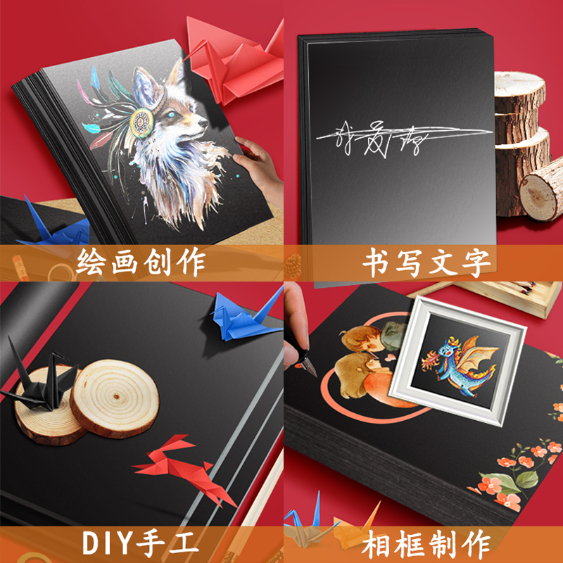 Black cardboard a4 fine art paper handmade paper 4 open thickened eight open black paper 4k handmade cardboard drawing paper painting paper 8k black and white cardboard black cardboard full open large kindergarten a3 paper