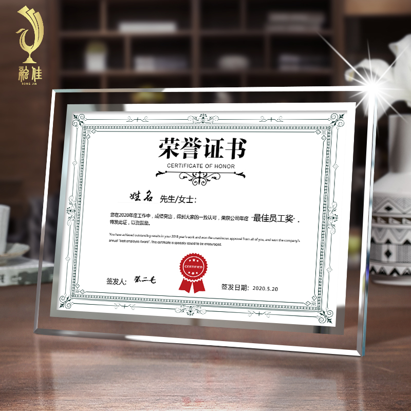 Glass certificate frame hanging wall A5a4 frame patent protection frame award certificate frame license frame crystal certificate frame