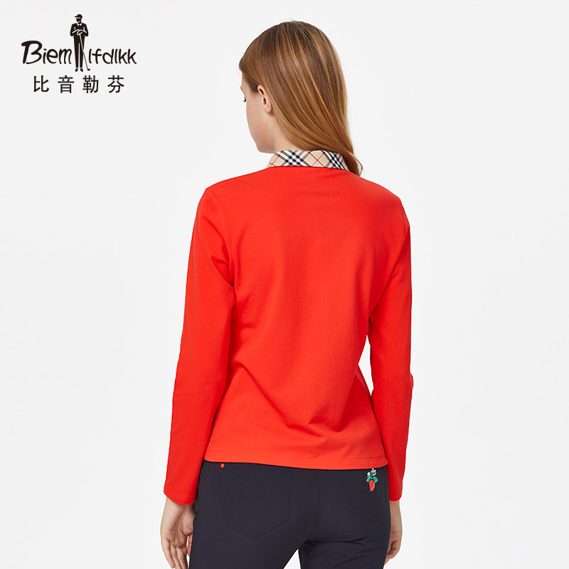 More than tone Le Fen Spring Summer lady turn over long sleeve pure color sleeve head life casual T-shirt blouse