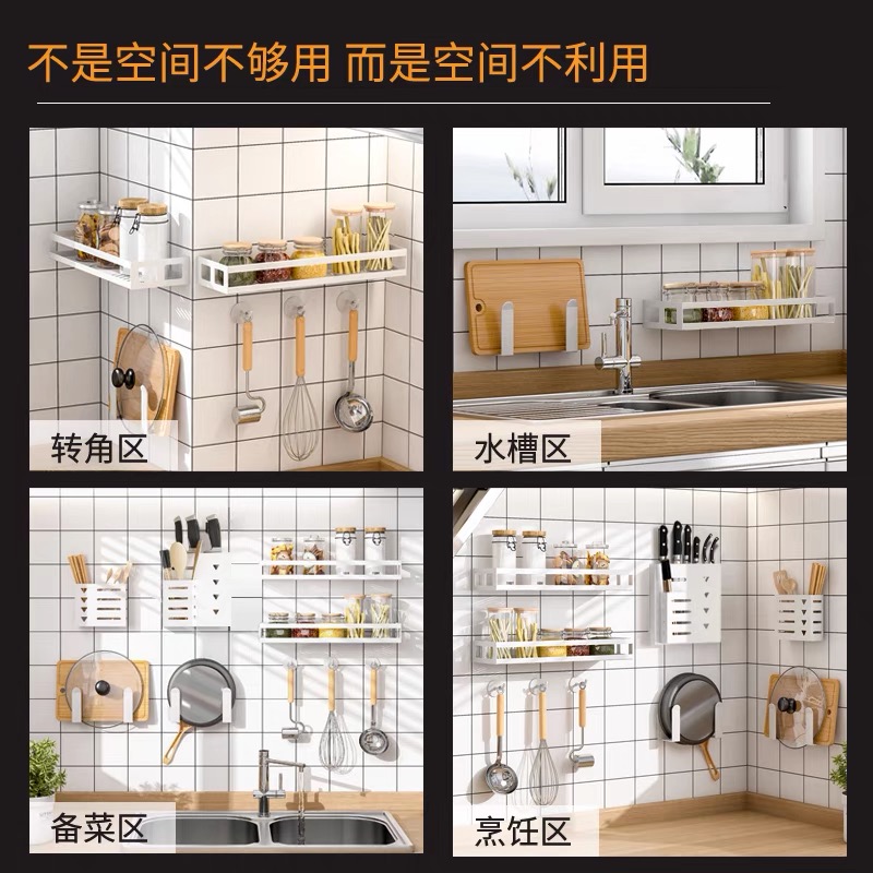 Kitchen rack wall-mounted seasoning rack free punching oil salt sauce vinegar shelf household condiment storage rack artifact
