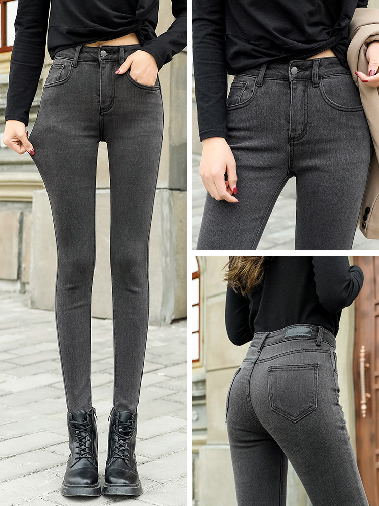 Smoke gray high-waisted jeans women's 2021 new skinny narrow tube pants spring and autumn slim slim nine-point pencil pants