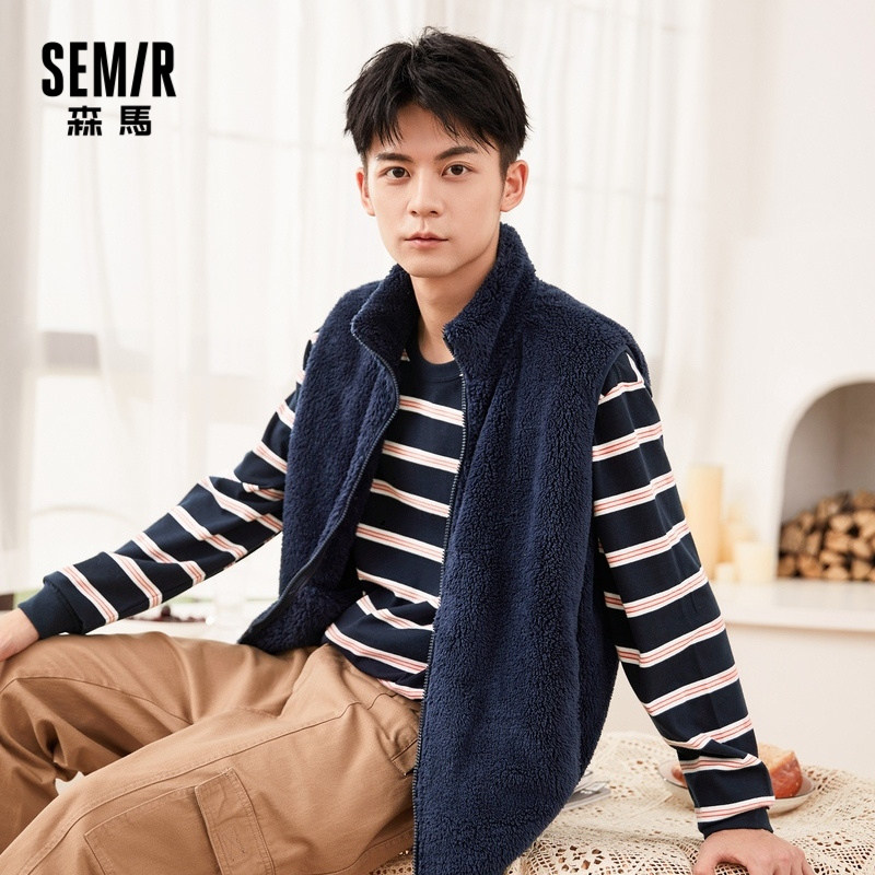 Senma men's sleeping clothes autumn and winter style lovers high collar rocking grain velvet warm vest sleeveless and outside wearing home clothes pajamas